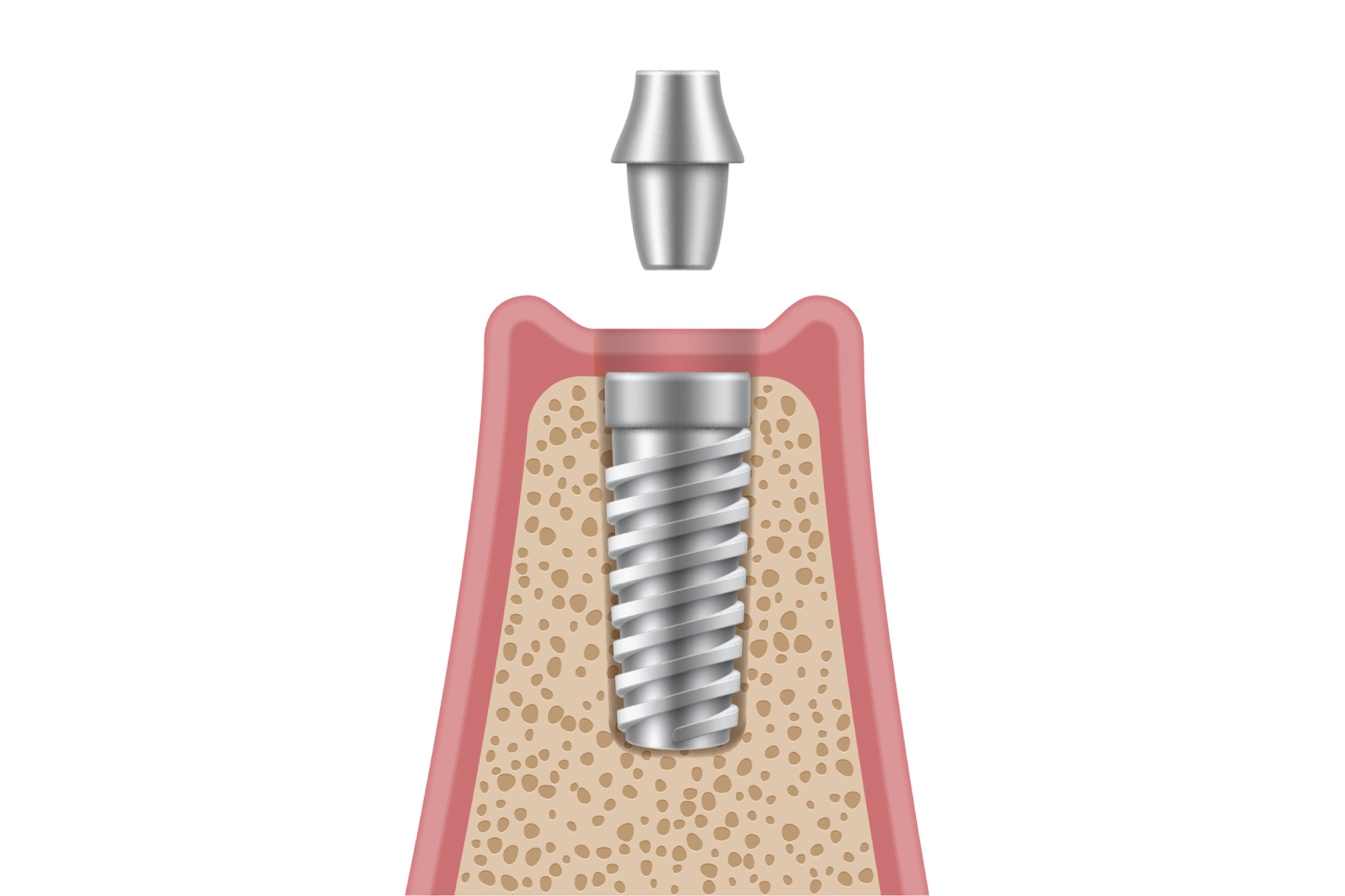 手術後の治療期間に、インプラント体と骨がしっかり結合し、その後にアバットメント(支台)、人工歯をインプラント体に取り付けます。