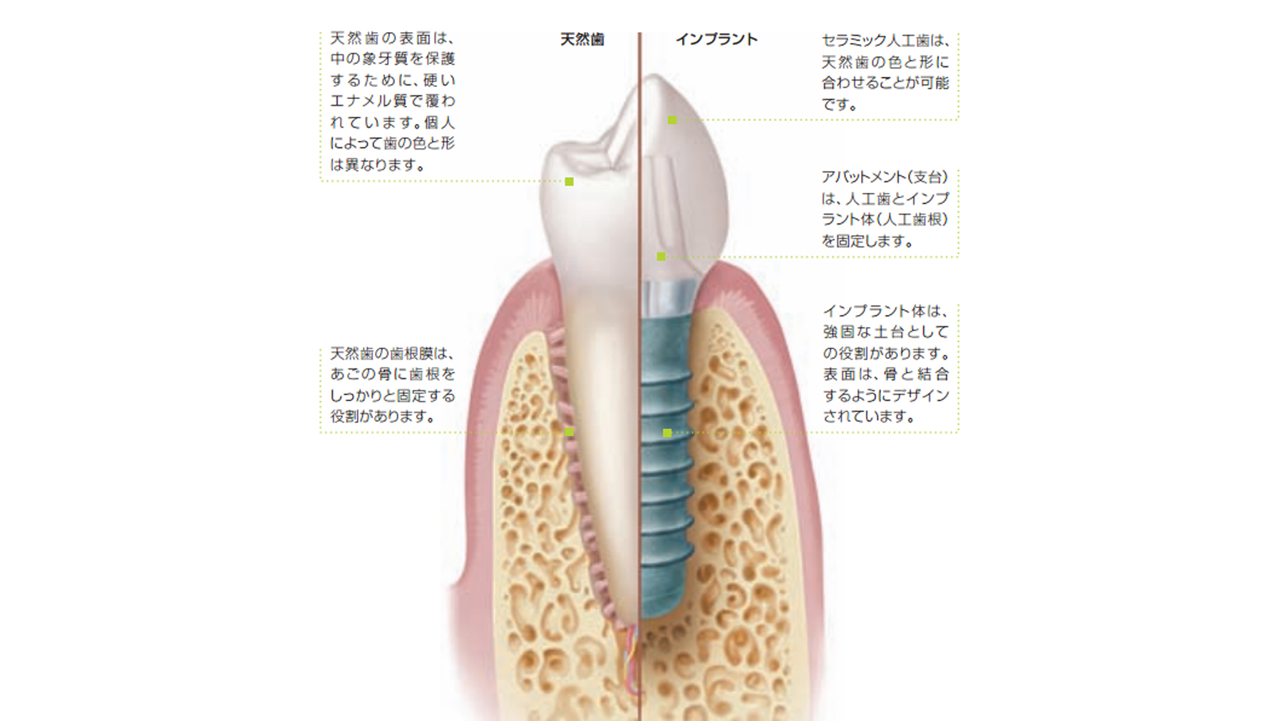インプラントは、天然歯とほとんど変わらない機能と見栄えを回復する治療法です。