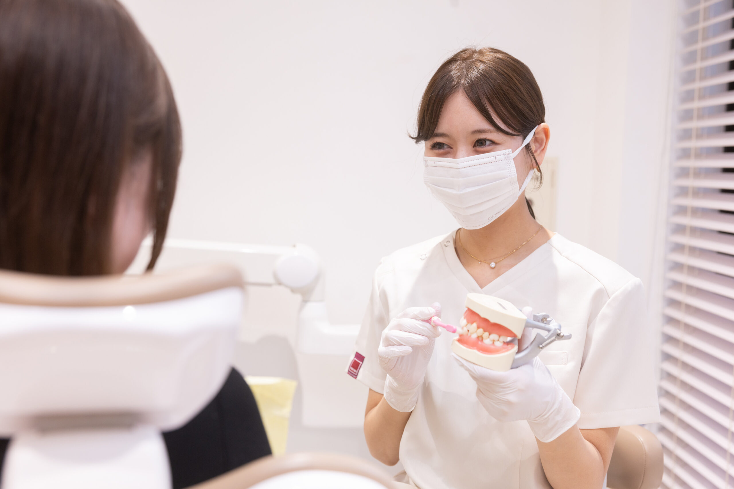 当院では、歯科衛生士がセルフケアのチェックを行い、一人ひとりに合った予防方法をアドバイスいたします。