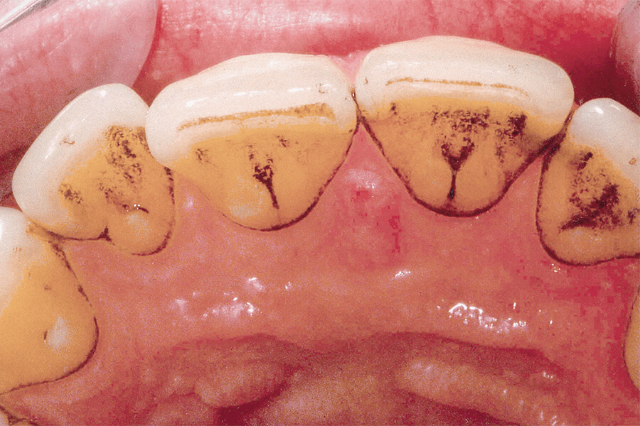 齲蝕部位がステインや沈着物、石灰化した残留物によって隠れていて、専門家による歯面清掃を行う前には見えないことがあるかもしれません。