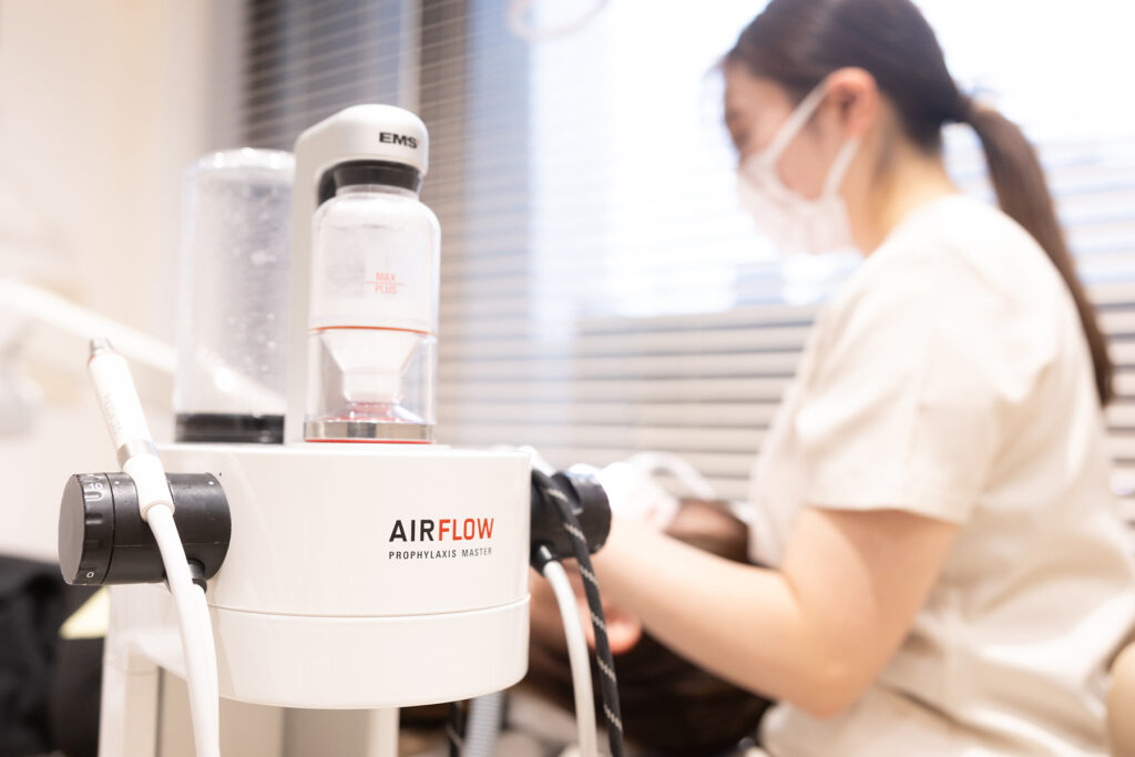 普段の歯磨きでは落とせない歯石や汚れを、専用器具やGBT(ガイデッド・バイオフィルム・セラピー)で丁寧に取り除きます。